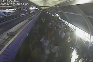 As imagens, divulgadas pela ViaMobilidade — concessionária responsável pela operação da linha — mostram o fluxo de passageiros na plataforma, o embarque dos usuários e, em seguida, o fechamento das portas do trem.